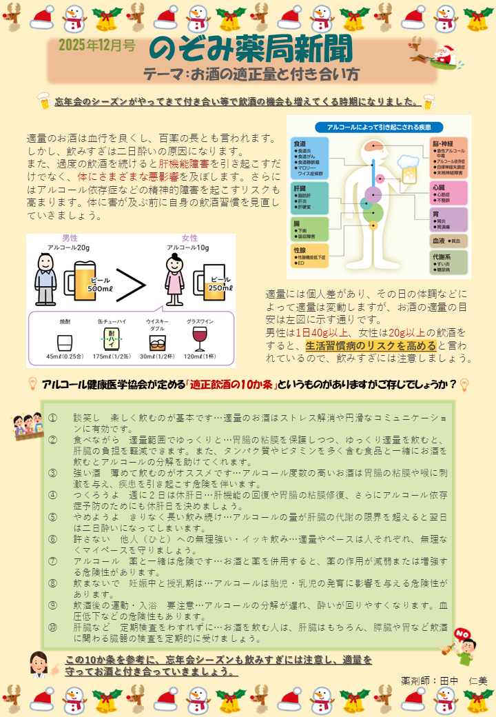 12月号は「お酒の適正量と付き合い方」がテーマです。